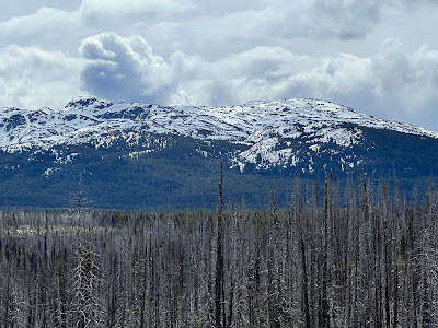 And we’re off to explore a new highway! The Chilcotin - Bella Coola, highway 20. It is reputed to be the most beautiful highway in BC. It’s very scenic with snow capped mountains. Lots of lakes. Little traffic. Decided to stay at Horn Lake, a forestry campground. Good decision. Right on a beautiful lake. Got a snow back drop on the mountain. Quiet and serene.